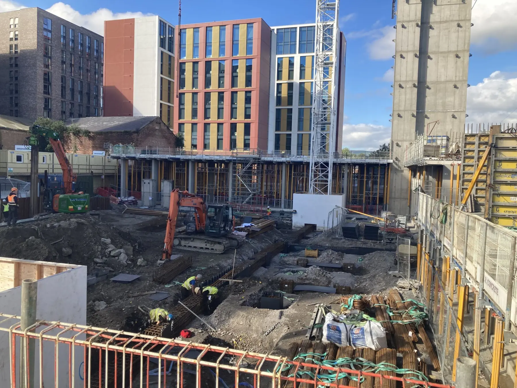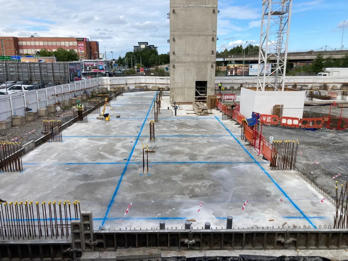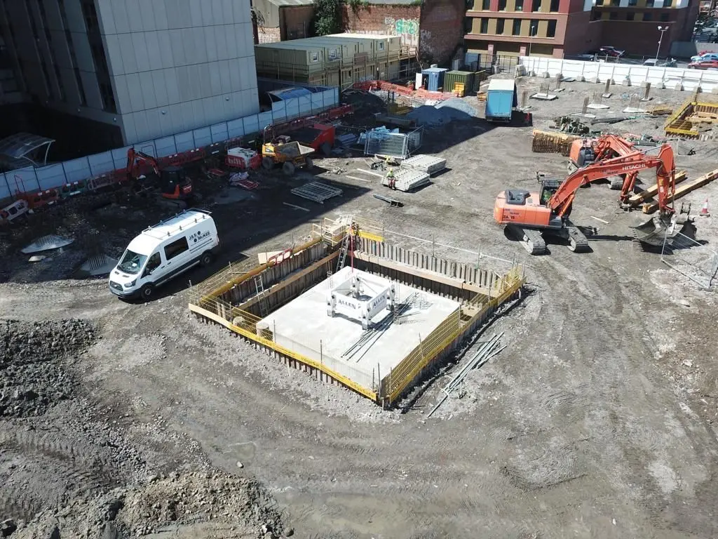 - Installation of reinforced concrete pile caps, ground beams, lift core bases, and tower crane bases